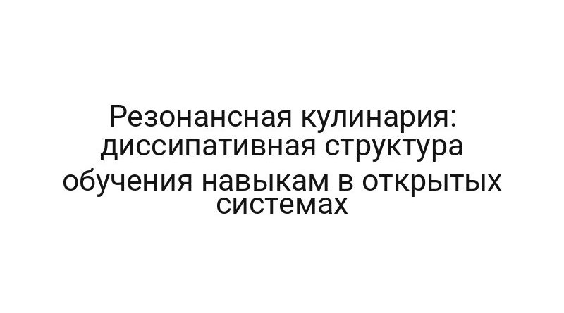 Резонансная кулинария: диссипативная структура обучения навыкам в открытых системах
